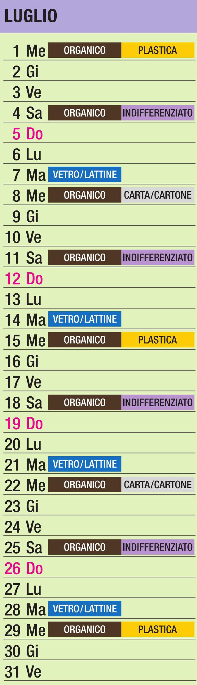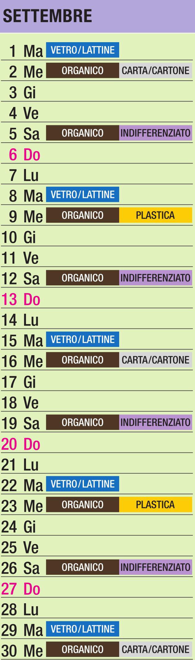 Calendario Raccolta Differenziata