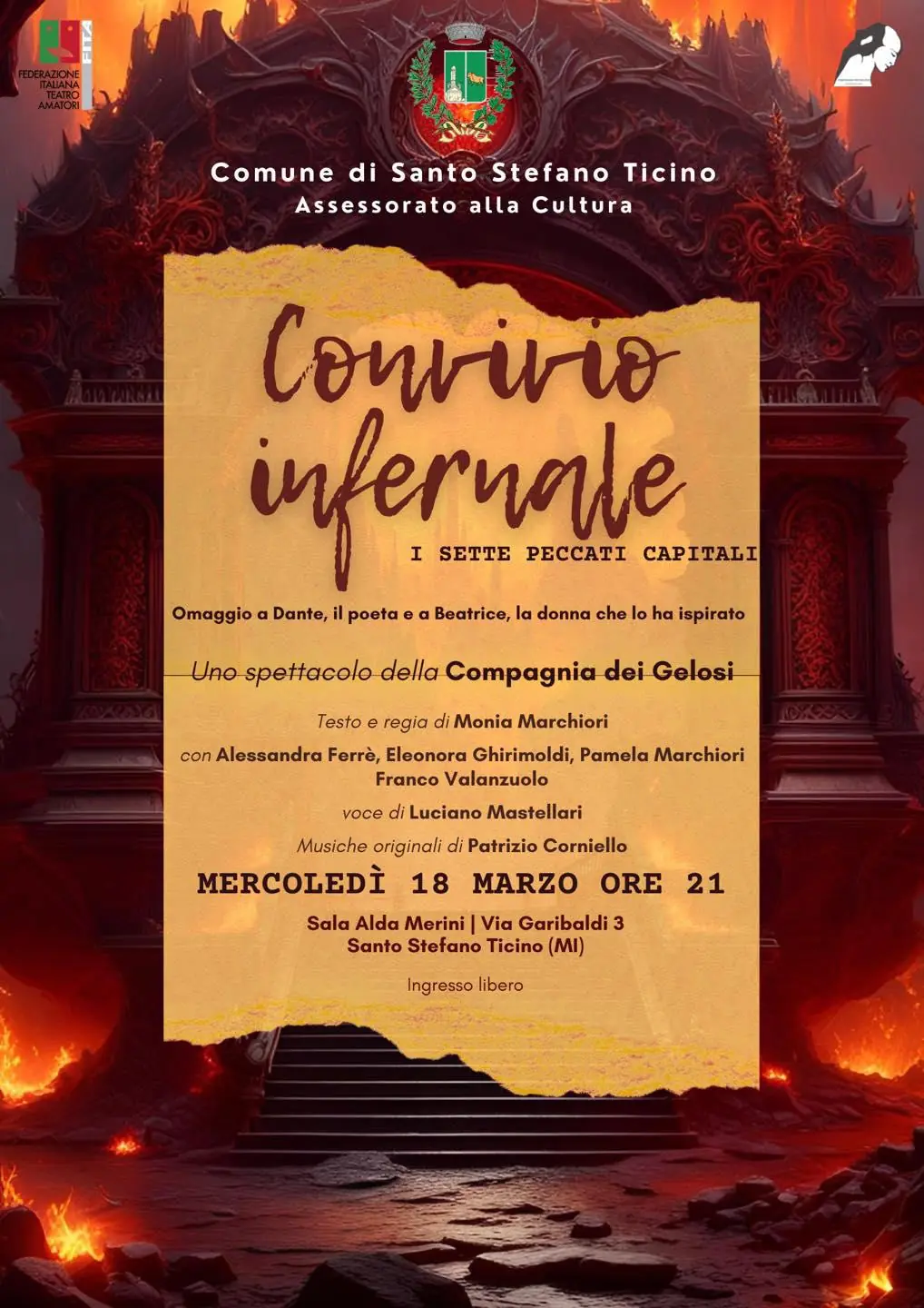 Spettacolo "Convivio infernale - I sette peccati capitali" dedicato a Dante, il poeta e a Beatrice, la donna che lo ha ispirato (start h. 21.00)
